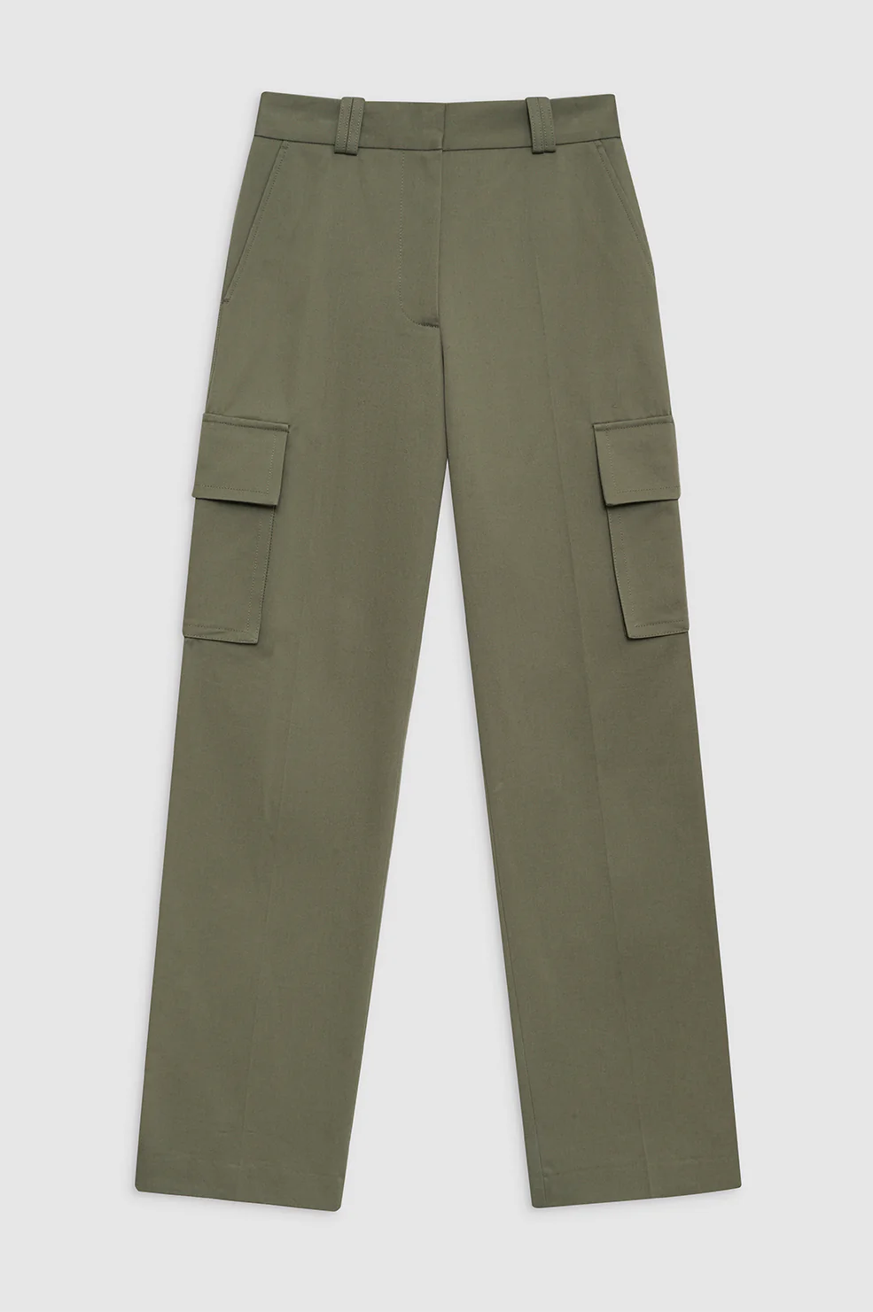A utility-inspired bottom constructed from a light-to-midweight 100% cotton-twill fabrication with a smooth hand and slight sheen. The Dayton Cargo Pant is half lined to the knee and features a relaxed, straight wide leg with oversized cargo pockets and back patch pockets. Complete with a front zip opening with a hook and bar closure and functional belt loops.