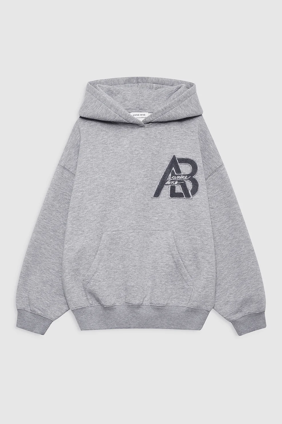 An oversized hoodie made from midweight melange cotton fleece in medium heather grey.