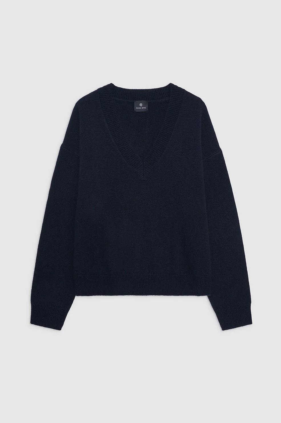 The Lee Sweater is a boxy, oversized knit featuring an exaggerated deep V-neckline. This effortless layer is crafted in midweight, ultra-soft 100% cashmere in deep navy.