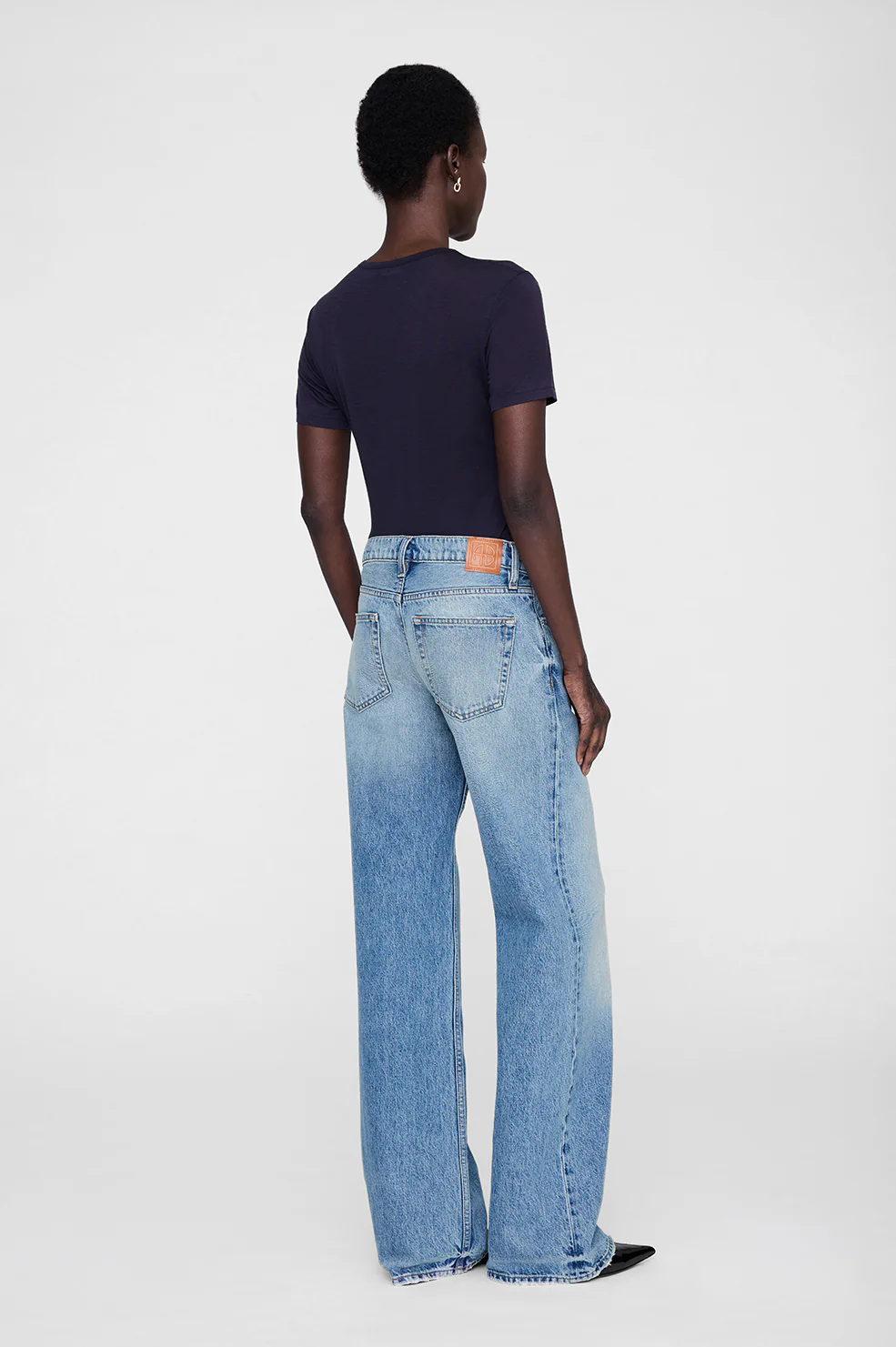 A short sleeve crewneck tee in a super fine, sheer jersey fabrication in midnight blue with a soft feel.