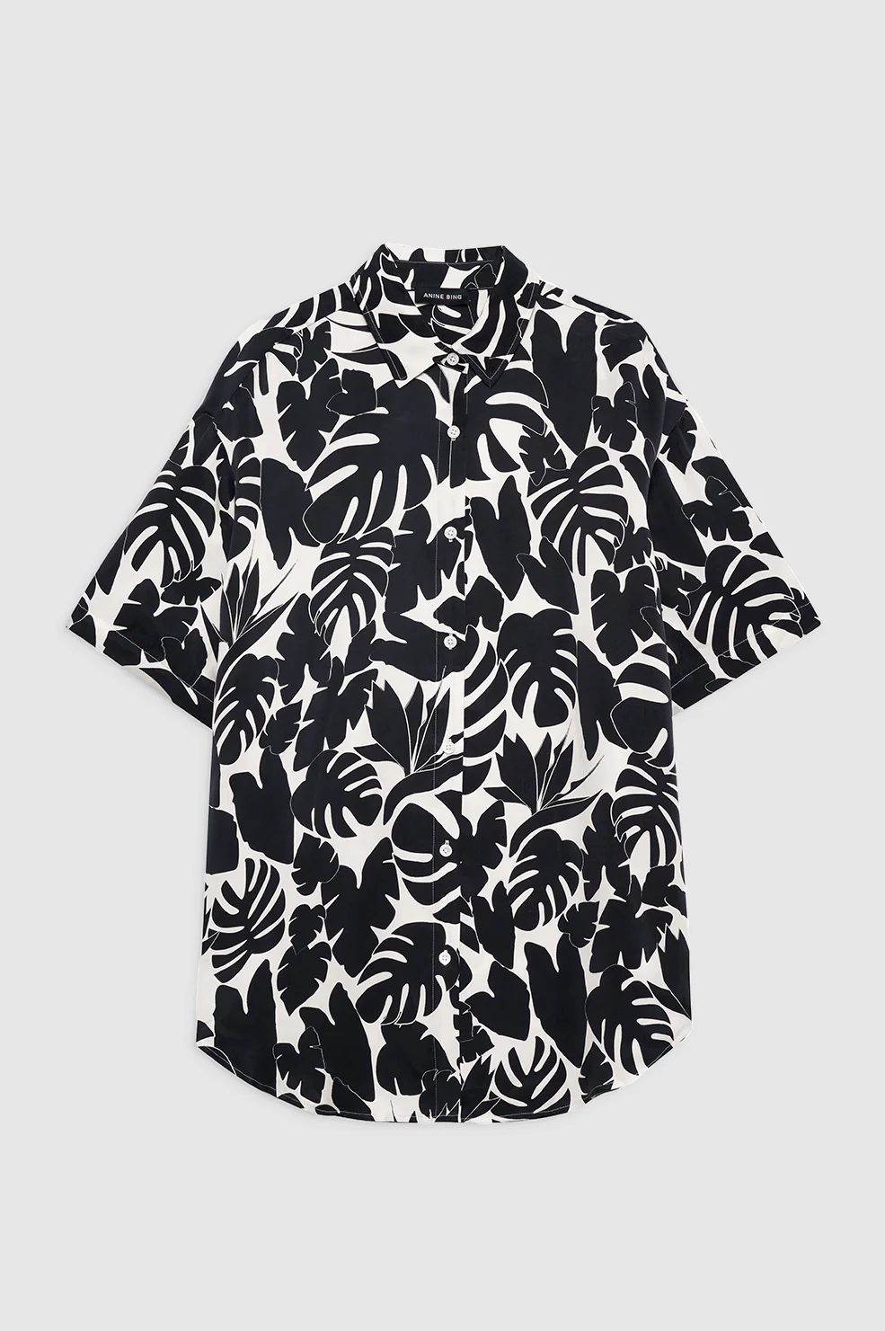 The Tristan Shirt is a relaxed button-up made from a lightweight, sand-washed cupro blend featuring an abstract bird of paradise print.